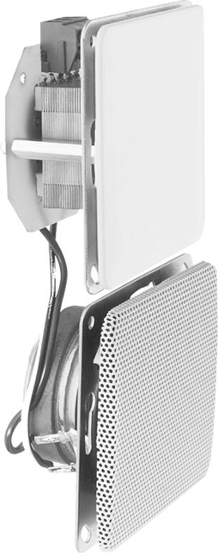 Lautsprecher geeignet für Sprache und Hintergrundmusik in z.B. Büros, Wohnhäusern, Hotelbädern, Der KEL ... UP T bietet einen für seine Größe erstaunlichen Sound. Er ist mit einem 50 mm-Breitbandlautsprecher und einem rückseitig angebrachten 100V-Übertrager bestückt. Die Metalltragplatte wird an einer Standard-Unterputzdose mit Tiefe von 63 mm angeschraubt. Das im Lieferumfang enthaltene Gitter in den Farben weiß, anthrazit oder silber wird auf die Metalltragplatte aufgesteckt und befestigt dadurch den Schalterrahmen. Dieser ist im Elektro-Fachgroßhandel erhältlich. Genaue Bestellbezeichnung in Abhängigkeit des Schalterprogramms siehe Tabelle am Ende des Kapitels Audioelektronik.