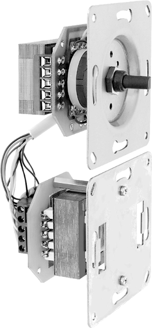 Vergrößern 100V-Lautstärkesteller geeignet für z.B. Büros, Restaurants, Kaufhäuser, ... Der LST 100 ist mit einem durchdrehbaren Drehschalter und zwei 50W-Sparübertragern bestückt. Optional ist er auch mit Pflichtrufrelais erhältlich. Die Metalltragplatten werden an zwei Standard-Unterputzdosen mit einer Tiefe von 63 mm angeschraubt. Sie sind für die Jalousieschalterabdeckung mit Drehknopf bzw. für die Blindabdeckung des jeweiligen Schalterprogramms vorbereitet. Diese Teile sind im Elektro-Fachgroßhandel erhältlich. Genaue Bestellbezeichnung in Abhängigkeit des Schalterprogramms siehe Tabelle am Ende des Kapitels Audioelektronik.