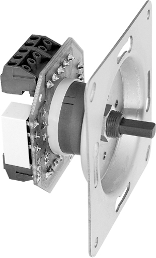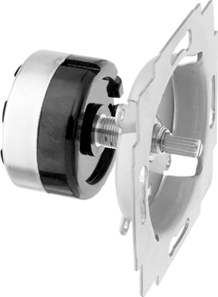 Vergrößern Stufenloser Lautstärkeregler geeignet für Wohnhäuser, Praxen, Der LR 15 Mono ist mit einem Potentiometer mit Anschlag bestückt. Die Metalltragplatte wird an einer Standard-Unterputzdose mit einer Tiefe von 63 mm angeschraubt. Sie ist für die Jalousieschalterabdeckung mit Drehknopf des jeweiligen Schalterprogramms vorbereitet. Diese Teile sind im Elektro-Fachgroßhandel erhältlich. Genaue Bestellbezeichnung in Abhängigkeit des Schalterprogramms siehe Tabelle am Ende des Kapitels Audioelektronik.