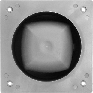Kompakter Einbau-Druckkammerlautsprecher, ideal geeignet für Sprachdurchsagen und Alarmierung im Innen- und Außenbereich, z.B. in Produktionsstätten, Notrufsäulen, .... Er ist nicht wie bei Druckkammerlautsprechern üblich mit einem Treiber, sondern mit einem 66 mm-Konusbreitbandlautsprecher bestückt. Daraus resultiert eine größere Bandbreite, weswegen die übertragene Sprache sehr natürlich klingt. Der Lautsprecher wird an den vier Bohrungen im Flansch angeschraubt. Die Kabeleinführung ist über eine M12-Verschraubung gelöst.