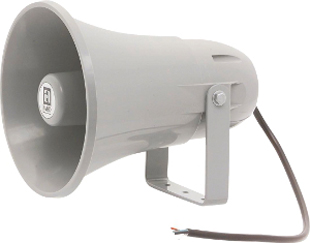Kleiner, preiswerter Druckkammerlautsprecher mit hohem Wirkungsgrad für Sprachdurchsagen und zur Alarmierung im Innen- und Außenbereich, z.B. in Produktionsstätten, Tiefgaragen, .... Der TL 310 ist mit einem herkömmlichen Treiber bestückt. Daraus resultiert ein hoher Wirkungsgrad. Die Montage erfolgt über einen im Lieferumfang beinhalteten U-Bügel. Er kann auch mit der optionalen Mastbefestigung MB 1/2 an einem Masten befestigt werden.