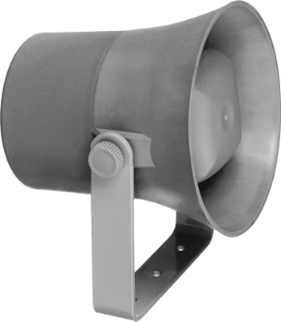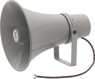 Preiswerter, großer Druckkammerlautsprecher mit sehr hohem Wirkungsgrad für Sprachdurchsagen und zur Alarmierung im Innen- und Außenbereich, z.B. in Produktionsstätten, Tiefgaragen, .... Der TL 330 ist mit einem herkömmlichen Treiber bestückt. Daraus resultiert ein hoher Wirkungsgrad. Die Montage erfolgt über einen im Lieferumfang beinhalteten U-Bügel. Er kann auch mit der optionalen Mastbefestigung MB 1/2 an einem Masten befestigt werden.