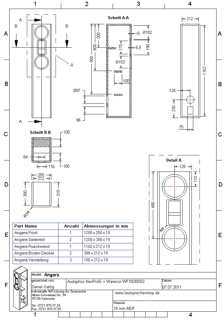 Da es Angara mangels Wavecor Tieftöner mit Nomexmenbran nicht mehr gibt, bieten wir hier Angara mit Wavecor WF182BD04 an.