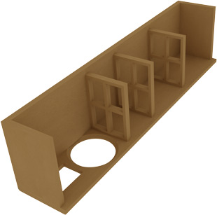 Vergrößern Das Bassreflexrohr beim Cherlen besteht aus zwei gekürzten und zusammengesetzten HP70. Die HP70 werden ab der Vorderkante vom Trompetenflansch auf 100 mm gekürzt. Das innere Rohr wird durch die Öffnung durchgesteckt und das herausragende Ende wird mit Klebeband an das äußere Rohr geklebt. Beide Schnittkanten bei den HP100 sollten gerade sein, damit eine leichte Montage möglich ist.