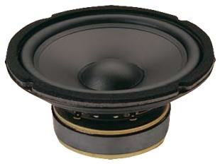 16 cm Tieftöner mit Papier-Membran. Der Lautsprecher ist geschirmt. Der Lautsprecher besitzt eine Doppelschwingspule und die Angabe der Impedanz ist in Reihenschaltung angegeben.