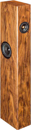 The frequency response of this speaker is nearly linear on axis (with typical resonances of fullrange speakers) and with a slight sink at 300 Hz. The decay spectrum is without faults. At low volume, i.e. 85 dB at 1 m, the nonlinear distortions are mostly lower than 0.5 % above 400 Hz and stays below 2 % at 95 dB at 1 m .
