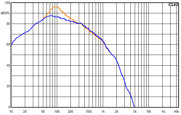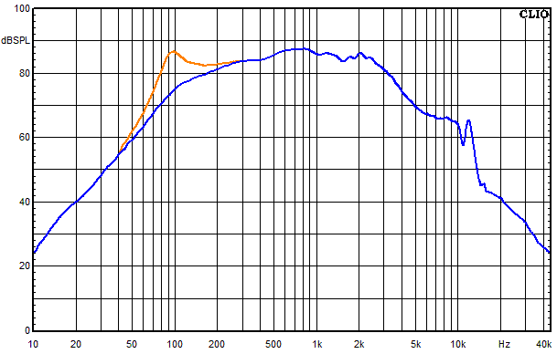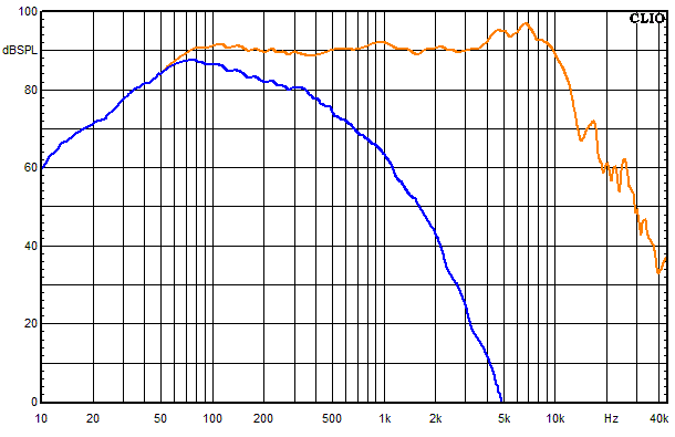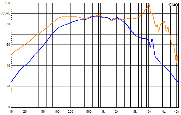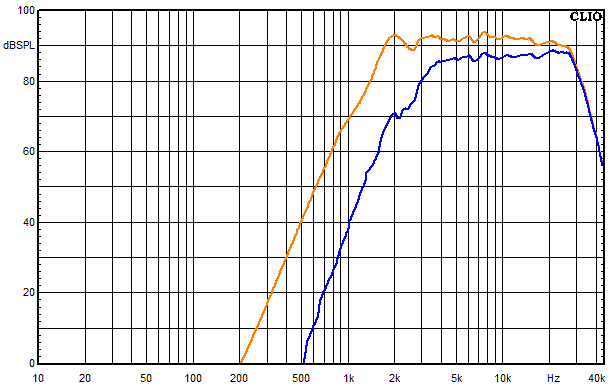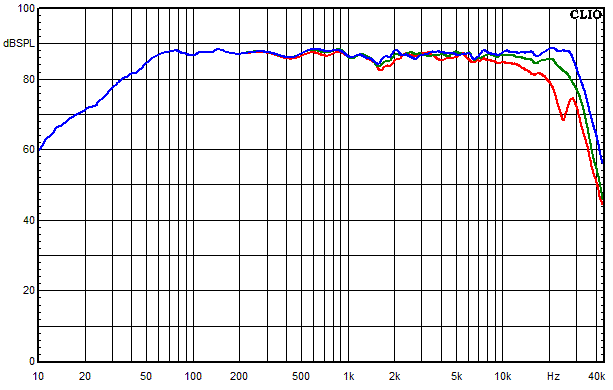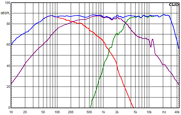 - Blau = Summe aus Hochtöner, Mitteltöner und Tieftöner auf Achse gemessen
