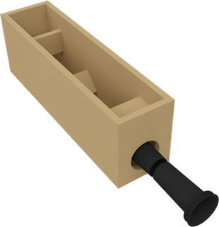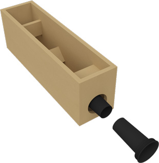 Vergrößern Das erste Bassreflexrohr von innen nach außen durch das Loch im Deckel stecken.