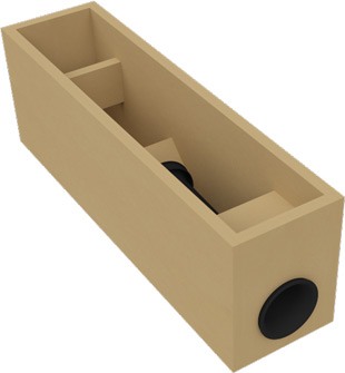 Vergrößern Der Lautsprecher wird komplett mit Bondum 800 ausgekleidet. 1/2 Matte Sonofil kommt in den Bereich um das Bassreflexrohr hinter den oberen Tieftöner, die Eintrittsöffnung des Bassreflexrohres dabei freilassen. 1 Matte Sonofil kommt in den unteren Bereich des Lautsprechers hinter und unterhalb des unteren Tieftöners.