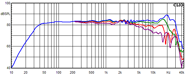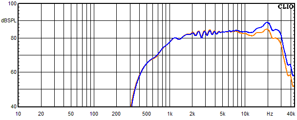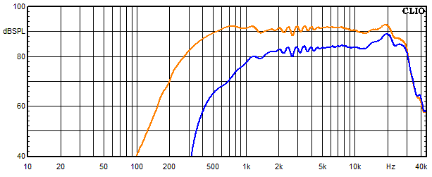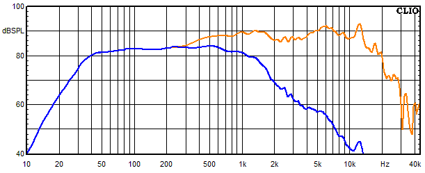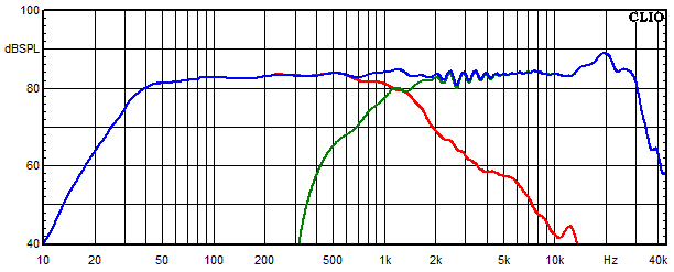 • Blau = Summe aus Hochtöner und Tieftöner auf Achse gemessen