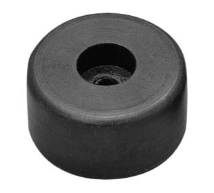robuster Boxenfuß für Lautsprecherboxen bis zu 200 kg. Der Fuß ist rund und besteht aus schwarzem Gummi mit 38 mm Durchmesser und 20 mm Dicke. Er enthält einen Metallkern.