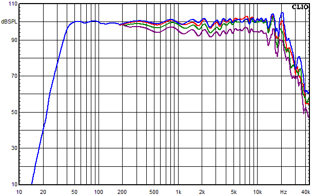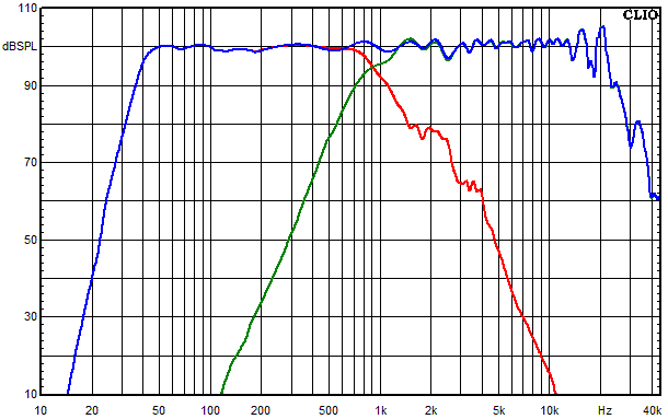 • Blau = Summe aus Hochtöner, Mitteltöner und Tieftöner auf Achse gemessen