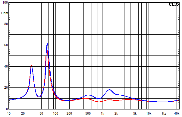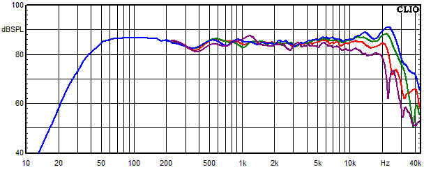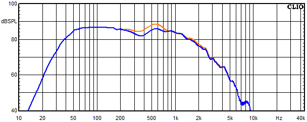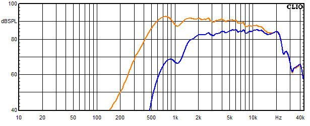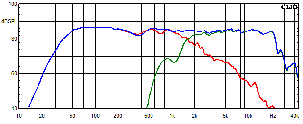 - Blau = Summe aus Hochtöner und Tieftöner auf Achse gemessen