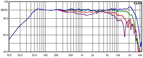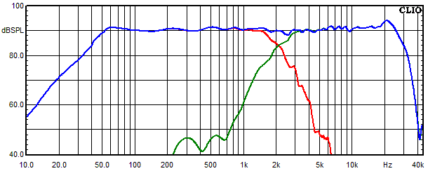 • Blau = Summe aus Hochtöner, Mitteltöner und Tieftöner auf Achse gemessen