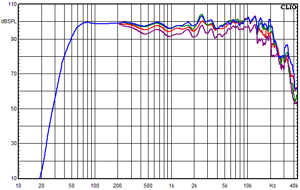 Orwell MK2 Klirrfaktor-Frequenzgänge bei 105 dB mittlerem Schalldruckpegel