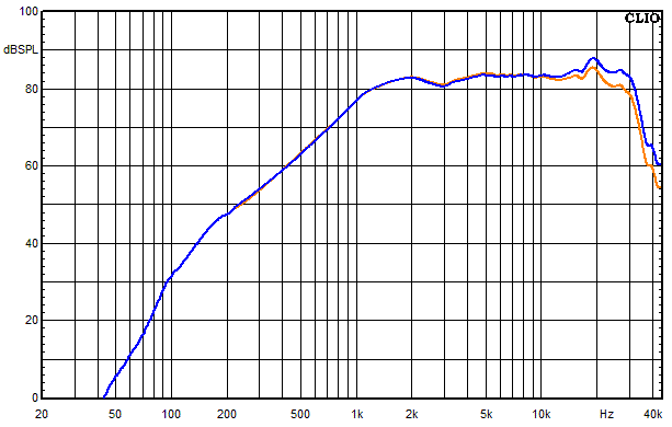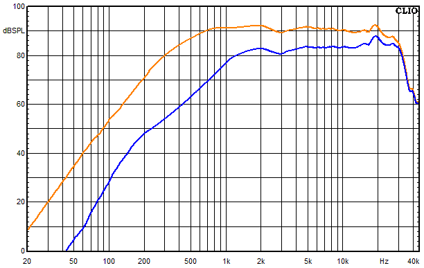 - Blau = Summe aus Hochtöner, Mitteltöner und Tieftöner auf Achse gemessen