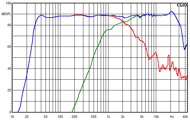 - Blau = Summe aus Hochtöner, Mitteltöner und Tieftöner auf Achse gemessen