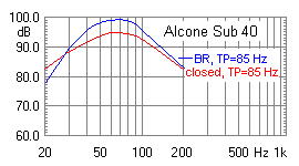 - compared with bass reflex set-up (blue curve)