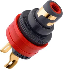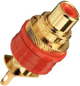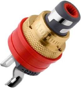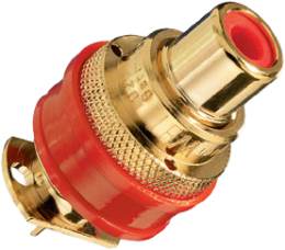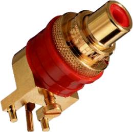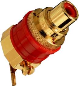 The inner contact is made of pure, highly conductive electrolyte copper and also gold-plated. This contact is designed in the form of an active spring contact so that the double prism contact surfaces are pressed onto the central pin of the RCA plug by a surrounding spring washer. Not only does this ensure reliable contact with non-standardised RCA plugs but contact also remains reliable even after the plug has been connected and disconnected many times over.
