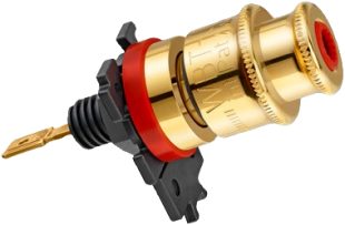 Superb mechanical properties, solid design and the two-piece clamping nut with rotatable pressure piece ensure high contact pressure and hence consistently low transition resistance – the precondition for absolutely minimum effects on sound quality. The elegant design of the pole terminal is further enhanced by the multi layer gold-plated surface that reliably prevents corrosion.