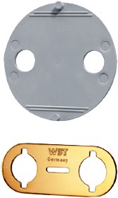 The puzzle plates are part of the standard supply of every WBT pole terminal. WBT pole terminals are protected against twisting thanks to the ‘nose’ present on the double step washer. This protection can (and should!) be optimised through use of the puzzle plate. In this case the distance between terminals has to be selected at 30 mm or 19 mm so that two terminals can be clipped together with the puzzle plate.