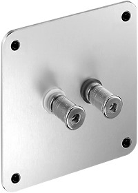The mounting plates permit the perfect installation of WBT pole terminals onto the rear wall of loudspeakers. A solid brass plate (the WBT-0716 is gold-plated and the WBT-0719 has a Velours Chromium Finish) and a round counter plate hold the terminals at a 30 mm distance and prevent turning and loosening. The serrated lock washer WBT-9150 is provided as part of the standard supply.