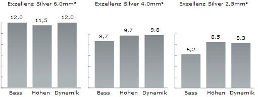 Hochflexible Litzen besitzen im Vergleich zu massiven Aufbauten in der Summe eine größere Leiteroberfläche. Dies kommt der Übertragung des Hochtonbereichs zu Gute. Neben dem feinen Litzenaufbau (0,07 mm) unterstützt die Versilberung des Exzellenz Silver die Übertragung der Höhen. Die verlustarme PE-Aderisolation und das zusätzliche PE-Dielektrikum entlasten darüber hinaus den Verstärker. Für mehr Dynamik und Spielfreude.