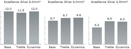 The Excellence speaker cable also uses the features of the highly sophisticated wire design. Like the Excellence Silver, this cable also has low-loss PE wire insulation, as well as the additional PE dielectric. The large cross-sections ensure the required base.