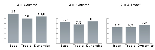 Each and every cable has its very own characteristic, even its own ?character?, which is relected in its very own timbre. This is because of its technical construction and the materials used for its manufacturing. The diagram shows how the described cable is positioned and where and what are its strong points. The indicated rating by numbers is based on our best knowledge and experience, as well as our own statistical calculations. It should give you some solid and easy to comprehend guideline, which should also be helpful to compare various products and to serve as a profound assistance for your selection and purchasing decision.