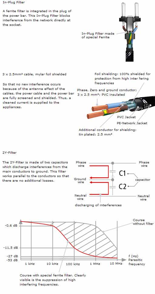 In-Plug Filter in the AC plug; 2Y-Filter in the power bar