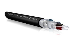 The balanced construction has two inner tin-plated 0.5 mm2 copper wires with 19 individual strands (19 x 0.185 mm) and polyethylene insulation. Two twisted PVC insulators are used as fillers. The Quattro Silver Shield multiple screening has two ALU-PETP films and two silver-plated spiral wrap screens running in opposite directions with fine 0.15 mm strands. There is a felt layer between the screen and the outer cladding to protect the outer silver screen. NF-S1 has an outside diameter of 8 mm.