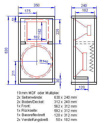 Diese Box wurde für kleine Kinos entworfen; Einsatzgebiet: HighEnd PA. Mit ihr können Sie auch Klassik-Musik hören. Die Originalboxen (Bild) wurde ohne überstehende Seiten entwickelt um allerhöchste Klangtreue zu erzielen.