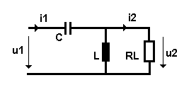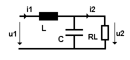 Verwendet man die oben angegebenen Hoch- und Tiefpässe als Filter (Weichen) vor Lautsprechern, dann muss man von der idealisierenden Annahme i2 = 0 absehen. Denn der komplexe oder angenähert reelle Widerstand eines Lautsprechers ist nicht hochohmig gegenüber dem ausgangsseitigen Widerstand eines Filters. Wir werden daher den Lautsprecherwiderstand nachfolgend durch RL (in der Zeichnung RL) berücksichtigen. Wir schließen RL zuerst an den Ausgang eines Tiefpasses, bestehend aus L und C, an.